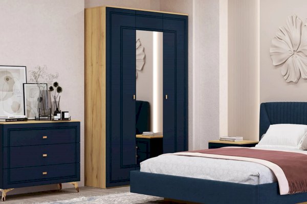 Дуб золотистый/Темно-синий софт