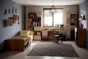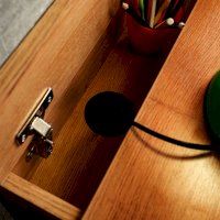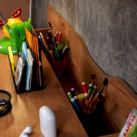 Стол письменный отличается нестандартным решением для столешницы, которая максимально адаптирована для потребностей современных детей и работе на компьютере. Под откидной её частью, которая открывается за плавный вырез, прячется ниша для хранения и отверстие с заглушкой для вывода проводов, чтобы они не запутывались и не мешали ребенку. Если ребенок ещё не занимается за компьютером, то нишу можно использовать и для размещения органайзеров с карандашами, фломастерами и красками, чтобы они не отвлекали от творчества. Дополняют стол ящики на шариковых направляющих. За счет просторной рабочей поверхности, а также возможности левосторонней и правосторонней сборки письменный стол одинаково удобен как для левши, так и для правши.