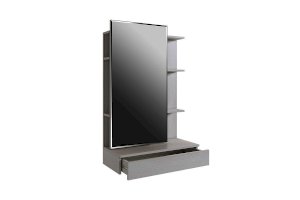 Зеркальная панель трюмо работает по принципу шкафа-купе, что обеспечит вам легкий доступ к вещам, которые лежат на полках за зеркалом.