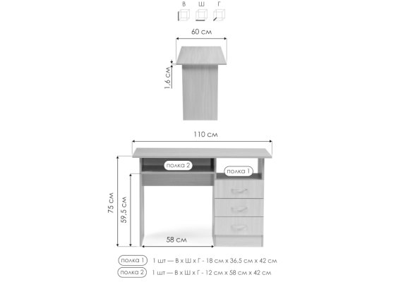 Толщина столешницы: 16 мм