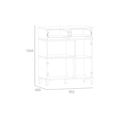 Тумба оснащена двойным ящиком, который выдвигается плавно и бесшумно благодаря шариковым направляющим. Открытая ниша может быть собрана как на правую, так и на левую стороны, и в ней можно удобно расположить книги или элементы декора, а высокие опоры придают внешнюю легкость и обеспечивают быстрый и легкий доступ во время уборки.