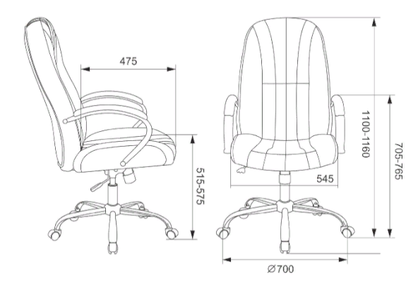 Высота с подлокотниками: 705-765