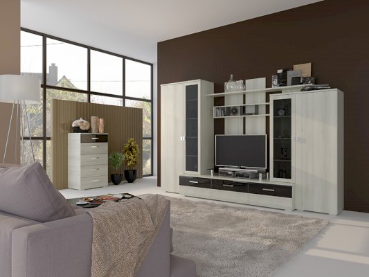 Модульная серия Куба — это отличное решение потребностей современного покупателя. Стильный дизайн, строгость линий, благородный цвет и качество исполнения — вот составляющие успеха этой гостиной.