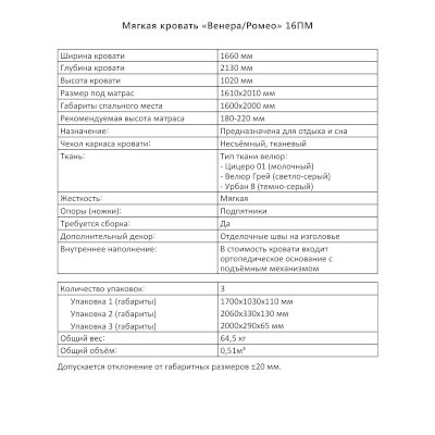 Спальное место: 160х200 см