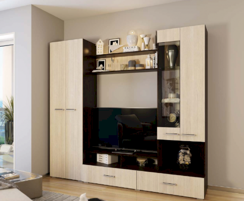 Гостиная «Латте» — оригинальное решение для современных интерьеров. Простой дизайн и деликатная расцветка выглядят универсально. Гарнитур подходит практически к любой обстановке. Комплект вместителен, функционален и надежен. В него входят все необходимые ящики, полки и ниши. Мебель укомплектована стильной фурнитурой и прочными доводчиками.