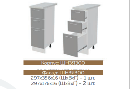 Глубина верхних шкафов: 300 мм