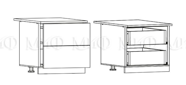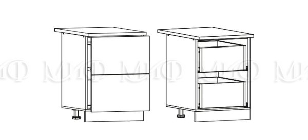 Глубина нижних шкафов без учета столешницы: 444 мм, с учетом столешницы 600 мм