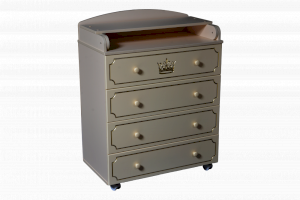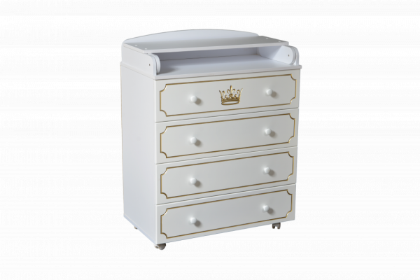 Пеленальный комод Nikol 80/4 отличается привлекательным дизайном с использованием тематических детских принтов. В конструкции изделия предусмотрены 4 маленьких передвижных колеса, несколько вместительных ящичков на шариковых направляющих и откидывающаяся пеленальная столешница. Детский пеленальный комод, декорированный красочным рисунком, вмещает в себя постельные принадлежности, средства гигиены, распашонки, подгузники, игрушки, ползунки и другие личные вещи ребенка. Гладкая столешница идеально подходит для пеленания ребенка, а колесики позволяют быстро перемещать комод.